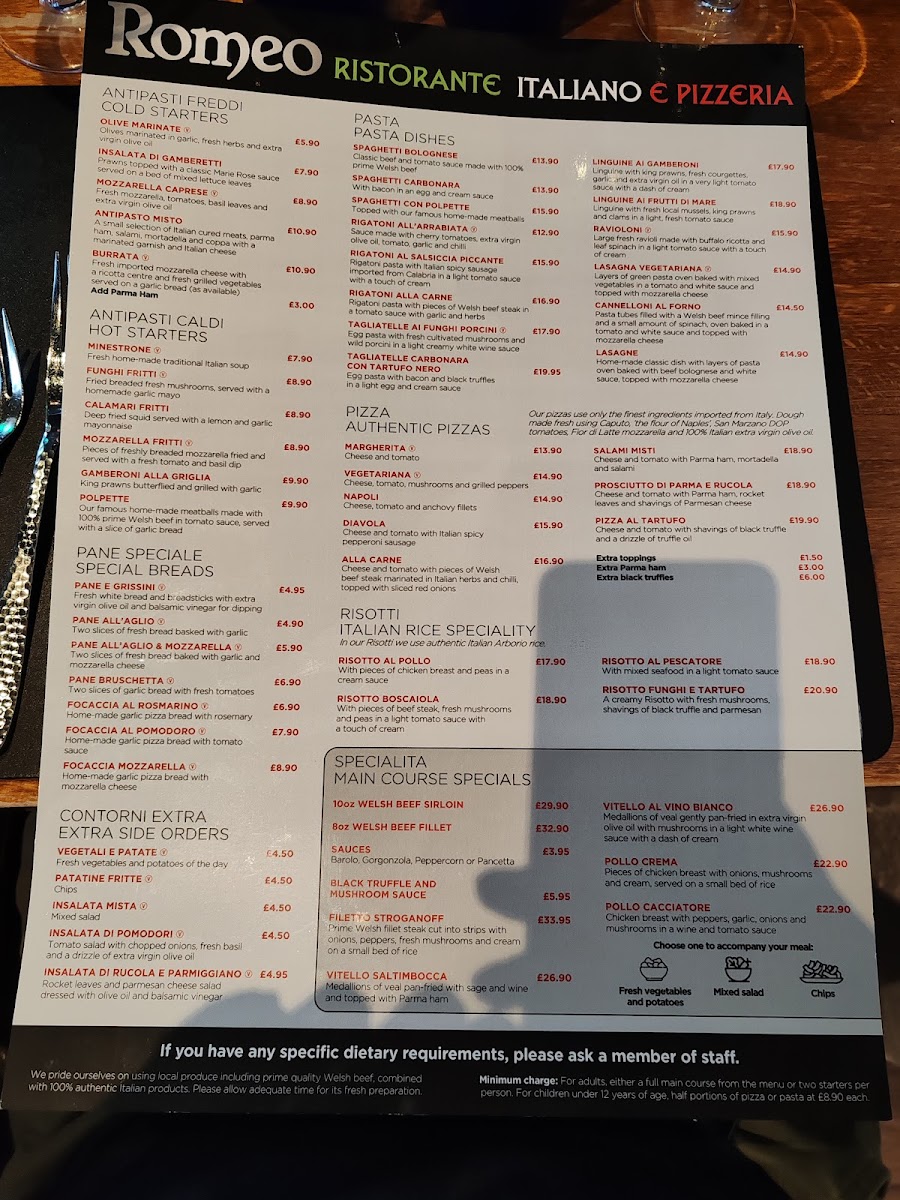 Romeo Ristorante Italiano offers a delightful Italian dining experience in the heart of Llandudno. Upon entering, the warm ambiance and classic Italian décor immediately set the tone for a memorable meal. The restaurant’s menu is a celebration of Italy’s finest culinary traditions, from mouth-watering antipasti to decadent desserts.